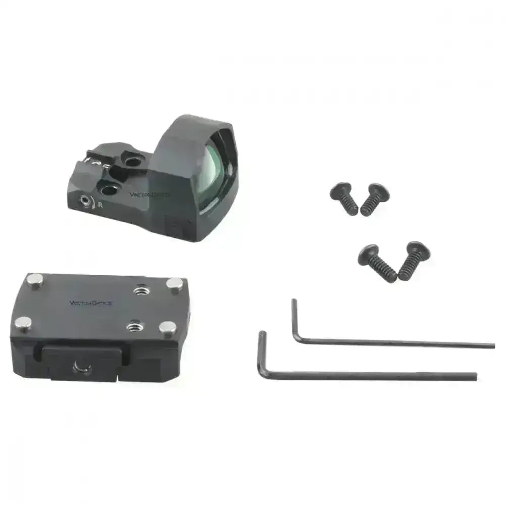Verdens letteste full-metalls rødpunktiskte. Denne lille rakkeren er parallaxfri som vil si at du treffer der prikken viser selv om du ikke ser bent gjennom siktet.