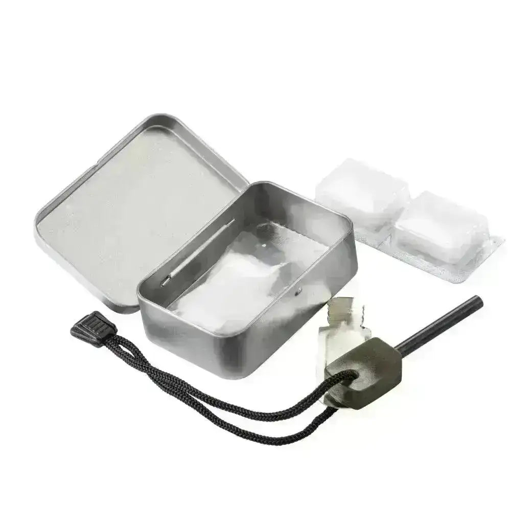 Tűzoltó készlet vészhelyzetekhez, túrázáshoz és szabadtéri tevékenységekhez - Tárolódoboz gyújtóval, pamuttal és tűzbrikettel!
