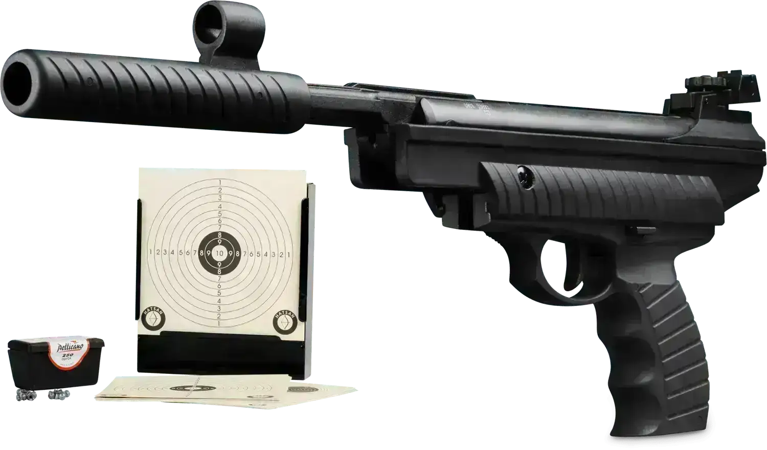 Ez a Hatsan Mod 25 csomagkészlet mindent tartalmaz, ami a légpisztolyos lövöldözés megkezdéséhez szükséges!