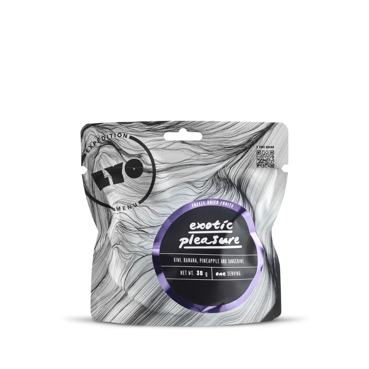 Ta med deg smaken av ferie hvor enn du går! Exotic Pleasure er en tropisk blanding av kiwi, banan, ananas og mandarin – 100 % naturlig og uten tilsetninger. Nyt den rett fra posen, som snack, eller bland i smoothie, frokost eller dessert. Perfekt for fjellturer, strandturer eller regnværsdager hvor du lengter etter sol.