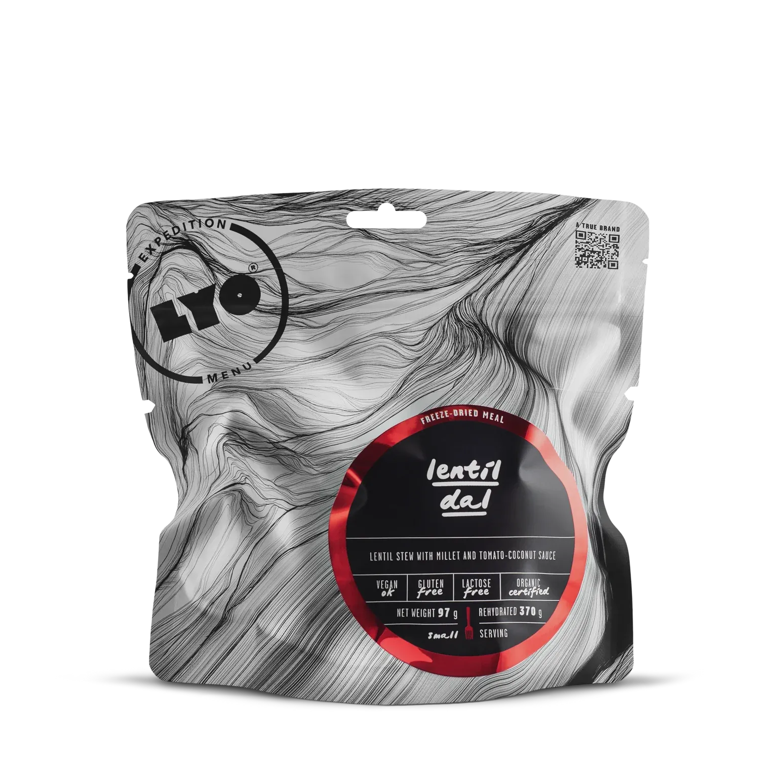 LYOFOOD Indisk Linsedal gir deg en aromatisk og næringsrik rett basert på røde linser, kokosmelk og ekte indiske krydder. Perfekt for deg som ønsker et vegetarisk og melkefritt alternativ på tur. Frysetørket for ekstremt lav vekt og lang holdbarhet – klar for ekspedisjoner, camping og eventyr i villmarken.