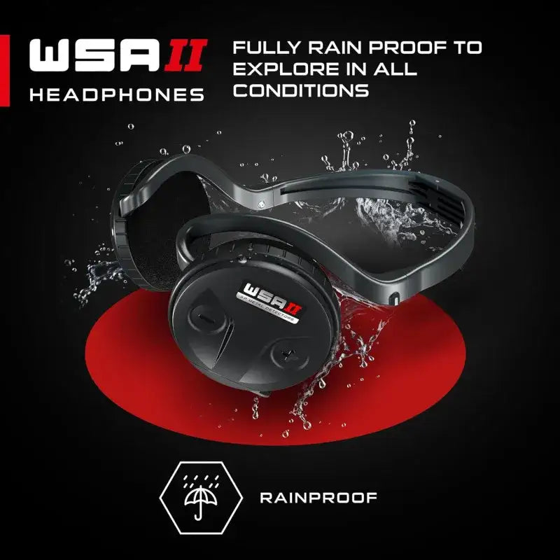 WSA II er de rimeligste trådløse hodetelefonene til XP DEUS II. De har en lett og åpen nakkebøyle som gjør dem komfortable å bruke sammen med caps eller lue, og de er regn- og sprutsikre slik at de tåler norsk vær. Hodetelefonene har volumkontroll og enkel lydequalizer for tilpasning av lyden.