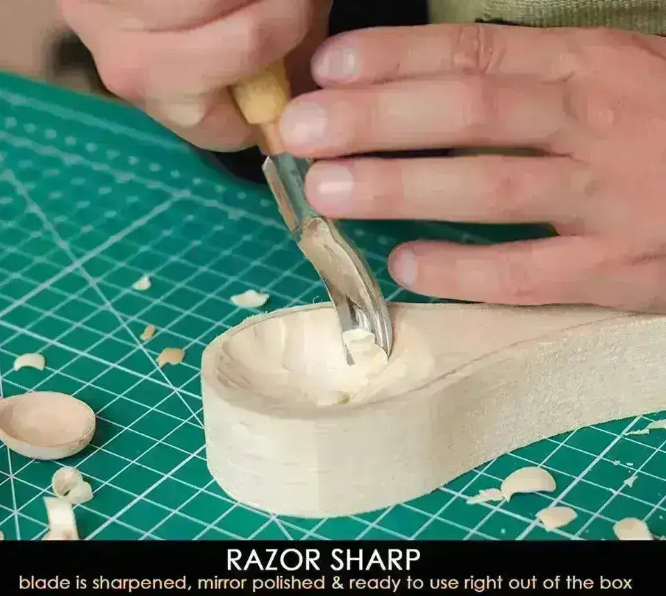 Íves véső fafaragáshoz, tökéletes a fa kiürítésére. A "hajlított véső" nagyszerű eszköz a kerek formák kialakításához a fában, jó eredménnyel. Felbecsülhetetlen értékű csészék, tálak és merőkanál szögeléséhez.