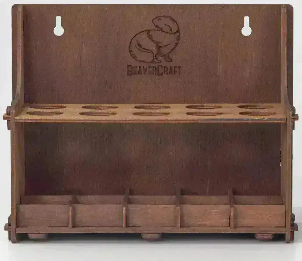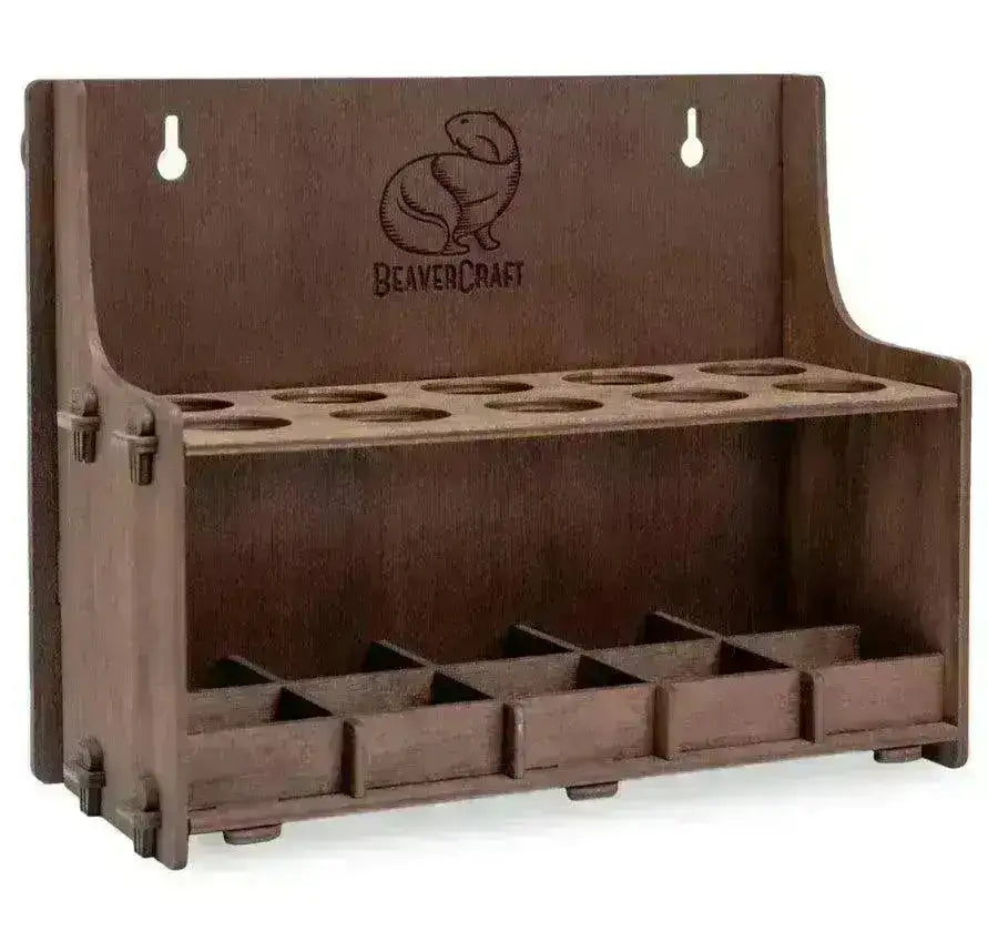 Remek szerszámtartó késekhez és hasonlókhoz. Tökéletes falra akasztani vagy a munkapadon állni. Nagyszerű sötét kivitel.