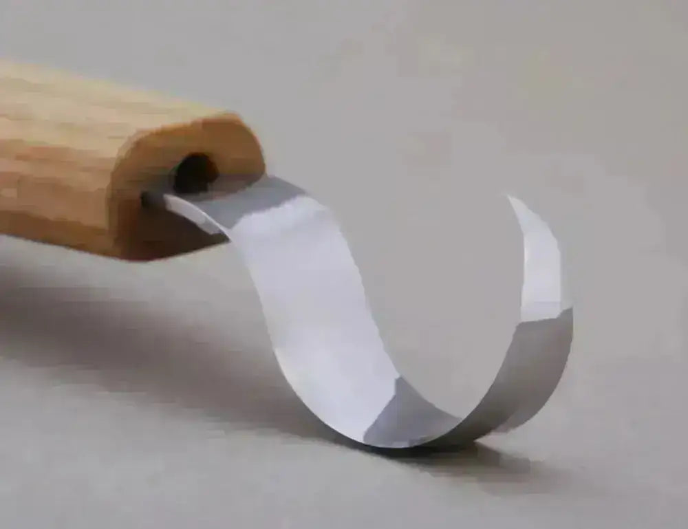Nagyszerű és robusztus 25 mm-es ívelt kés fafaragásokhoz. Felbecsülhetetlen értékű kés tálak, csészék és kanalak faragásához.
