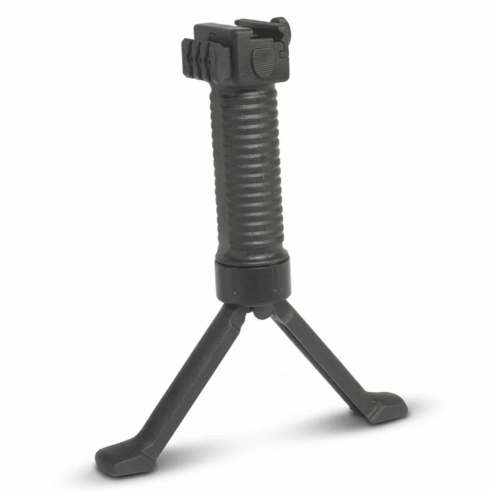 Elülső markolat integrált bipoddal a Hatsan pisztolygyártótól - Polimerből készült, amely jelentős súly hozzáadása nélkül szilárddá teszi. A bipod gyorsan kihajtható a kapcsoló megnyomásával.