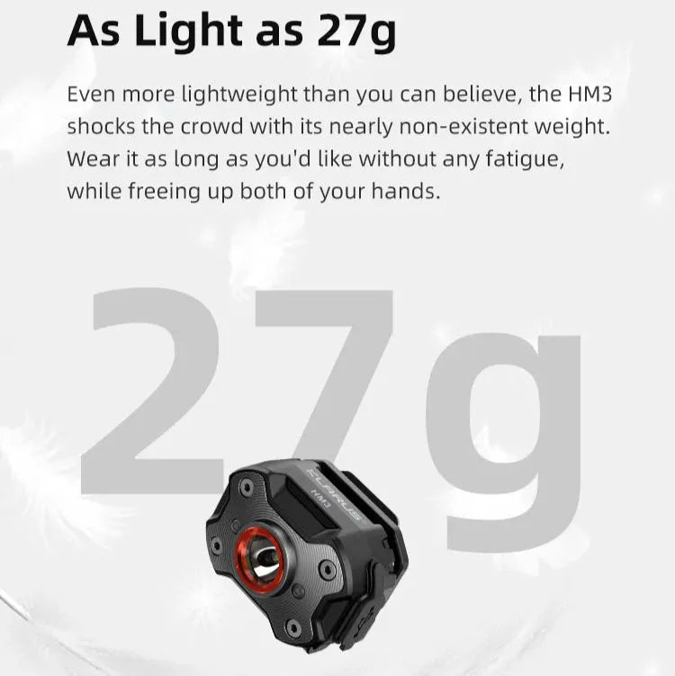 KLARUS HM3 er en ekstremt lett hodelykt på kun 27 g, omtrent like lett som et egg! Perfekt for langvarig bruk uten ubehag, enten det er til løping, fotturer, camping eller arbeid i mørket.