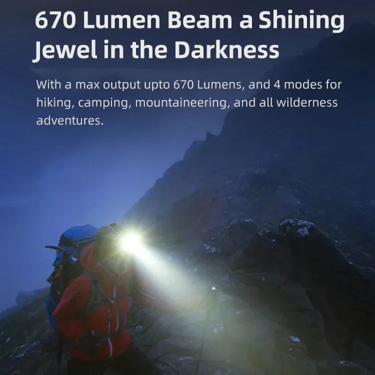 Hodelykten har en kraftig lysstyrke på opptil 670 lumen og fire ulike lysmoduser, slik at du får optimal belysning uansett situasjon – enten du er på tur, fjelltur eller jobber i dårlig opplyste omgivelser.