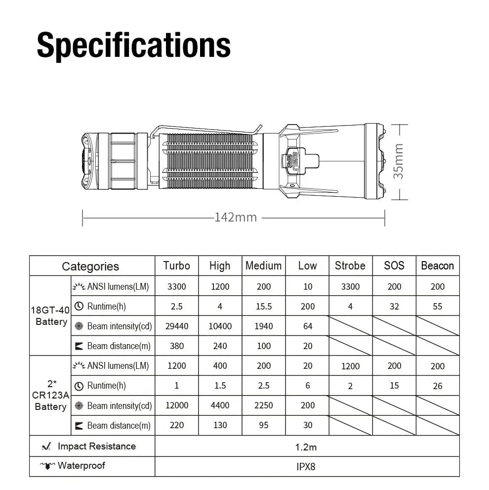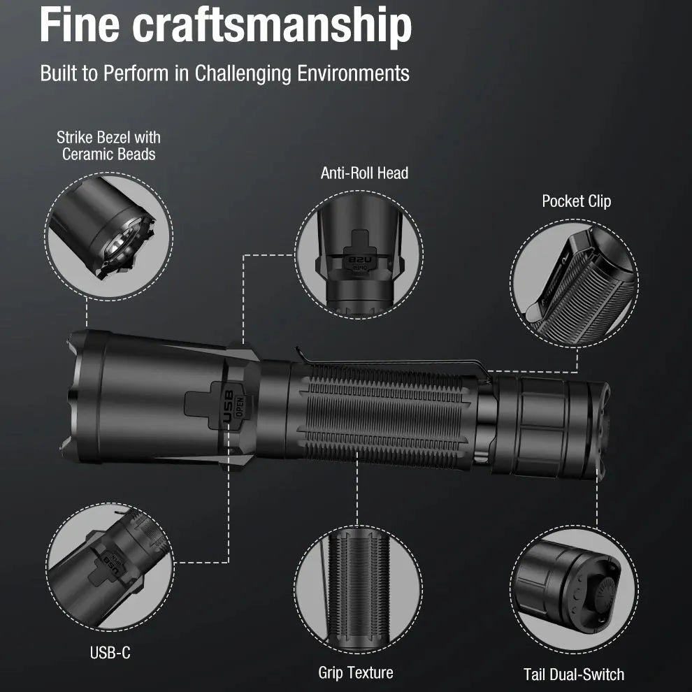 Klarus XT11GT PRO-V3 er en kraftig og allsidig taktisk lommelykt designet for profesjonelle brukere, friluftsentusiaster og nødsituasjoner. Med en imponerende lysstyrke på 3300 lumen lyser denne lykten opp områder opptil 380m, perfekt for krevende forhold.