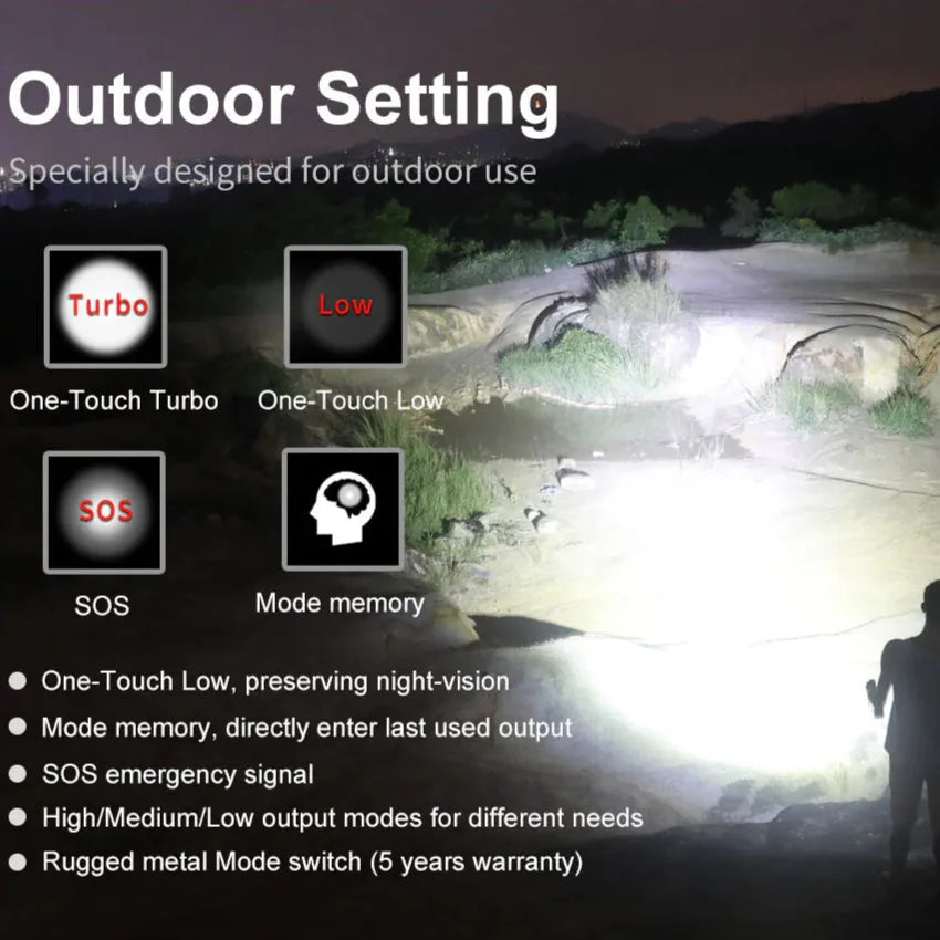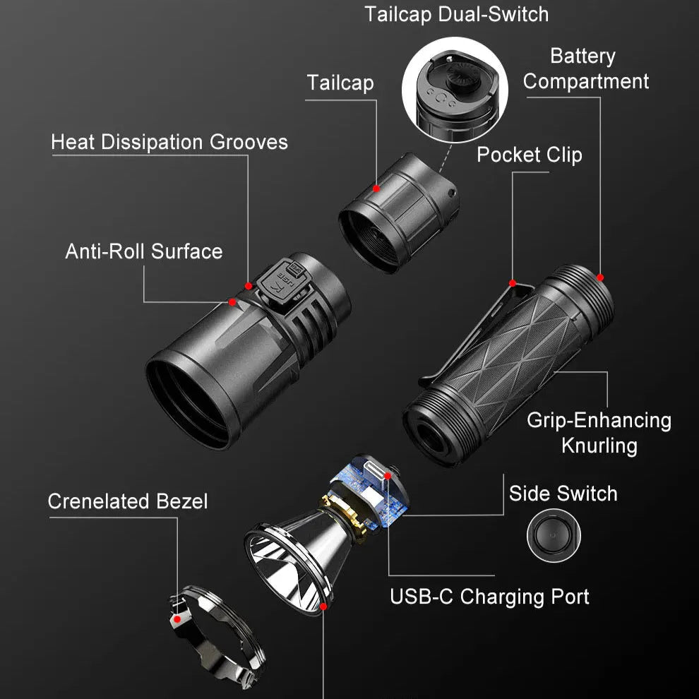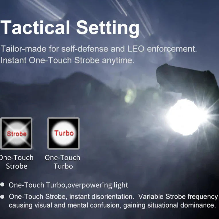 KLARUS XT21X Pro er en kraftig oppladbar taktisk lommelykt med en imponerende lysstyrke på opptil 4400 lumen og en rekkevidde på 316 meter. Perfekt for taktiske operasjoner, friluftsliv og nødbruk.