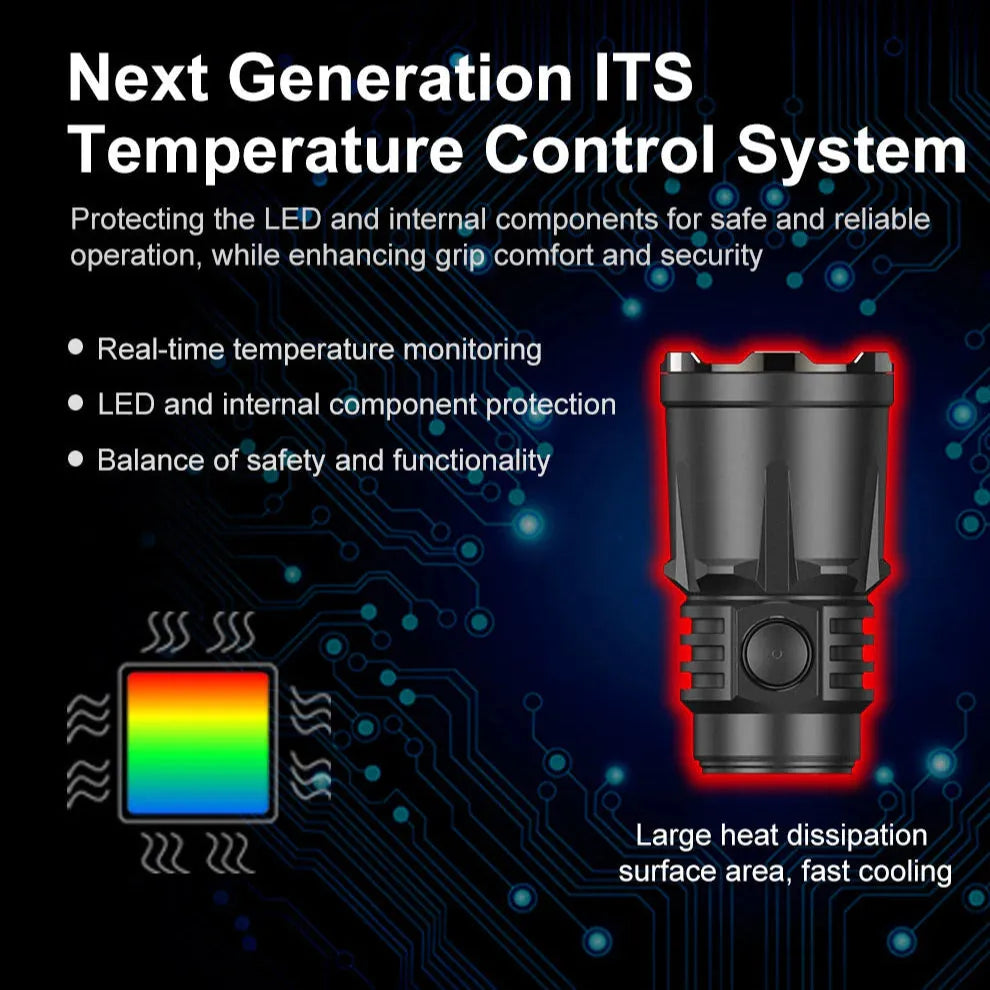 KLARUS ITS-teknologi (Intelligent Temperature Protection System) overvåker varmen og justerer lysstyrken automatisk for optimal ytelse og sikkerhet.