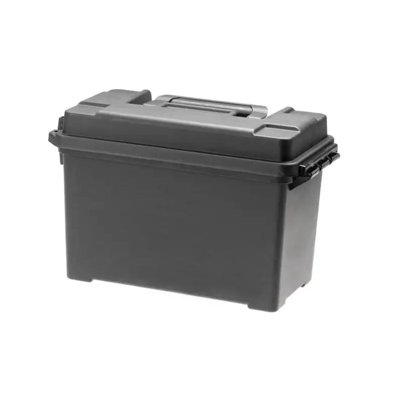 En allsidig og solid oppbevaringsboks laget for trygg lagring av ammunisjon, utstyr og annet som må beskyttes mot fukt og støv. Boksen leveres i to størrelser (medium og large) og passer utmerket både til skytebanen, garasjen og som del av et beredskapslager.