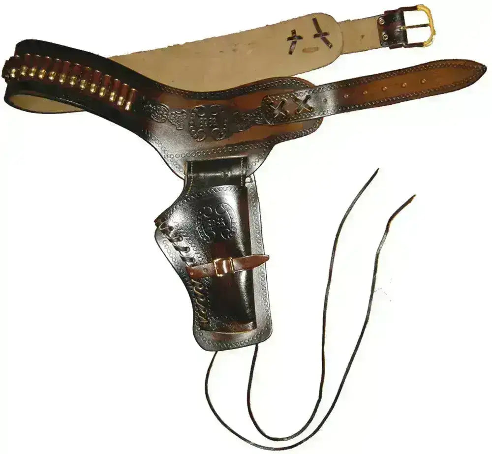 MEGJEGYZÉS: Ez bőr, minden övnek megvan a maga egyedi érintése, és a képek kissé eltérhetnek. A revolver és a patron nem tartozék!