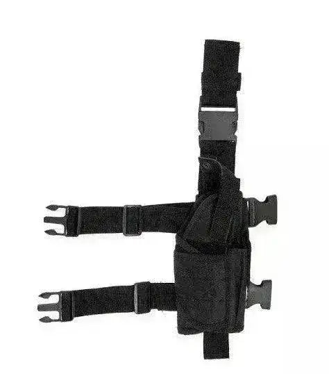 Ez az univerzális pisztolytok nylonból készült, és matt fekete színű. Az övhöz rögzíthető, és két állítható pánttal a comb körül. A tok jól illeszkedik és számos pisztolyhoz illeszthető, mivel a méret tépőzárral állítható, többek között a tok illeszkedik az M9, Glock, 1911, USP és még sok máshoz!