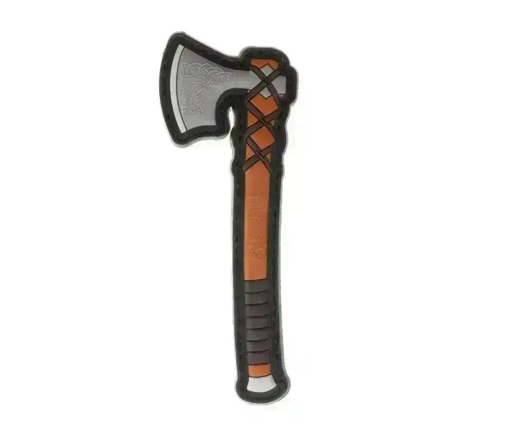 Egy nagy és autentikus skandináv foltvarrás, egy viking fejsze részletes 3D motívumával! A fejsze fején Thor kalapácsa motívum látható.