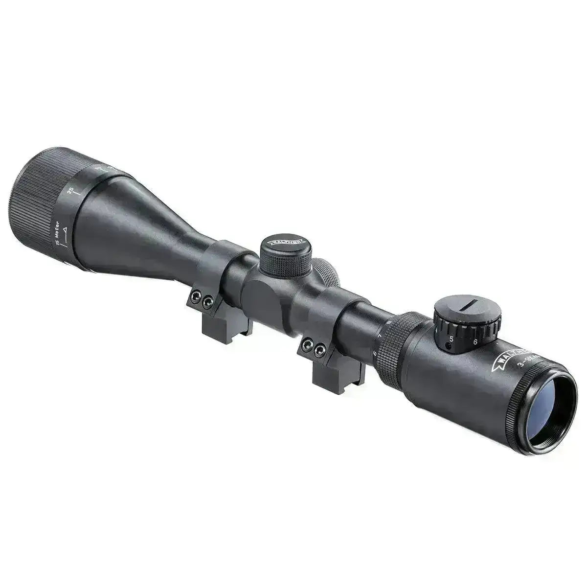 Egy nagyszerű Umarex céltávcső változtatható nagyítással, állítható parallaxissal és rögzítőkkel. Az irányzékon pirosan világító irányzék van, és CR2032 elemet használ. Az irányzékot megvilágítás nélkül is használhatja az irányzékon.