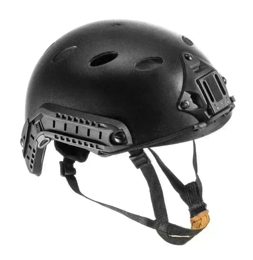 A híres PJ FAST sisak egyszerű másolata. A sisak tökéletes airsoft játékokhoz, és állítható állszíjjal, NVG szerelvénnyel és oldalsó sínekkel rendelkezik.