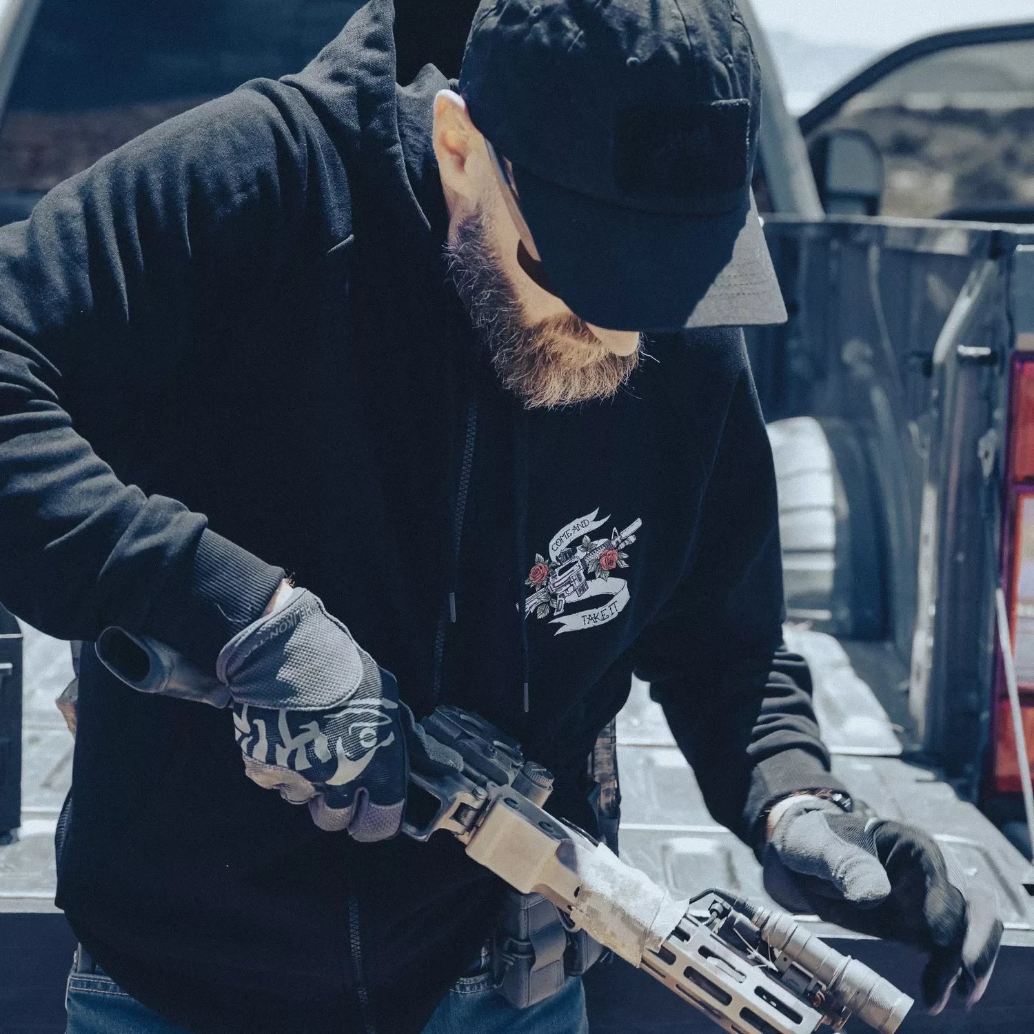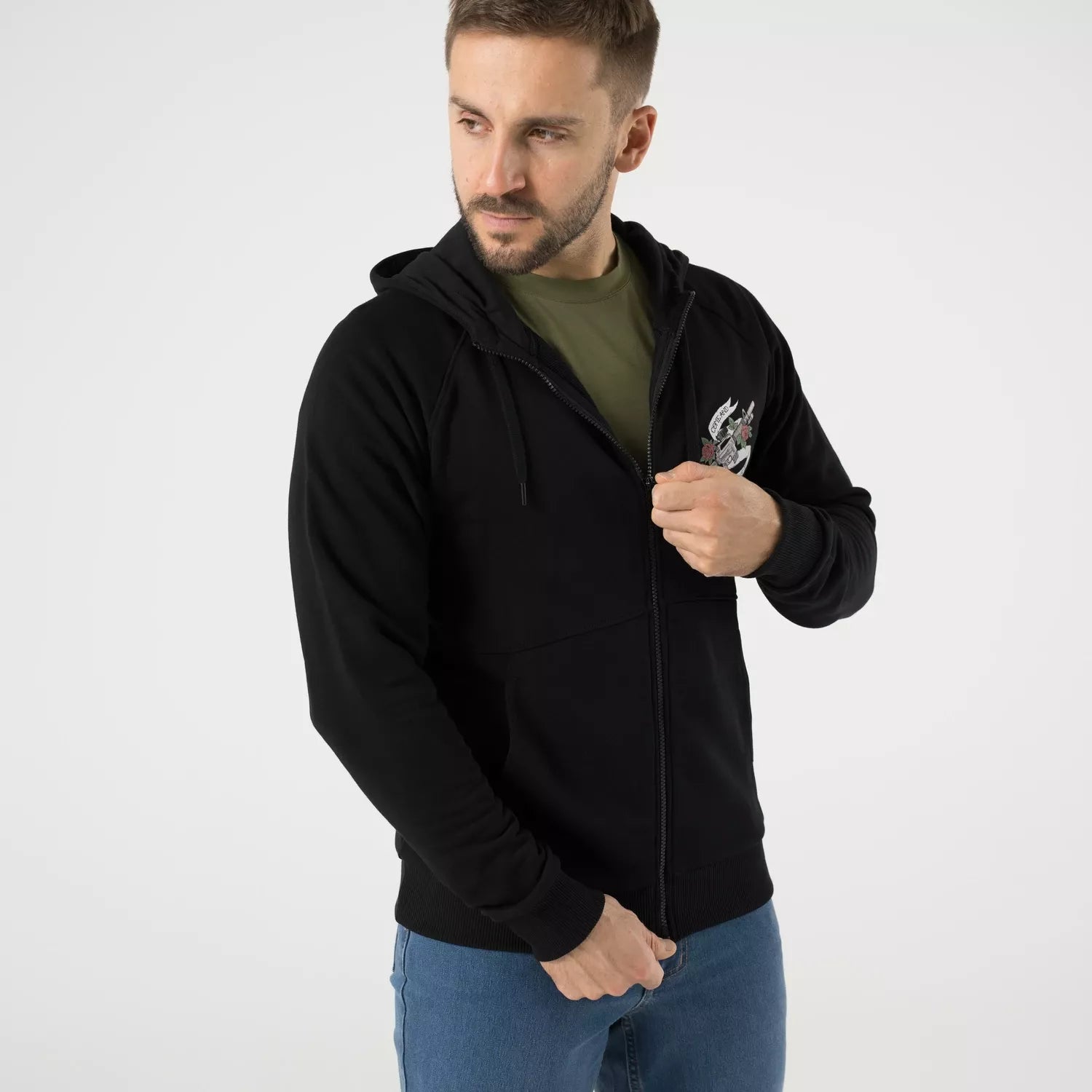 Et godt alternativ for deg som vil ha en lett og praktisk hettegenser med hel glidelås og et diskret, historisk inspirert trykk.