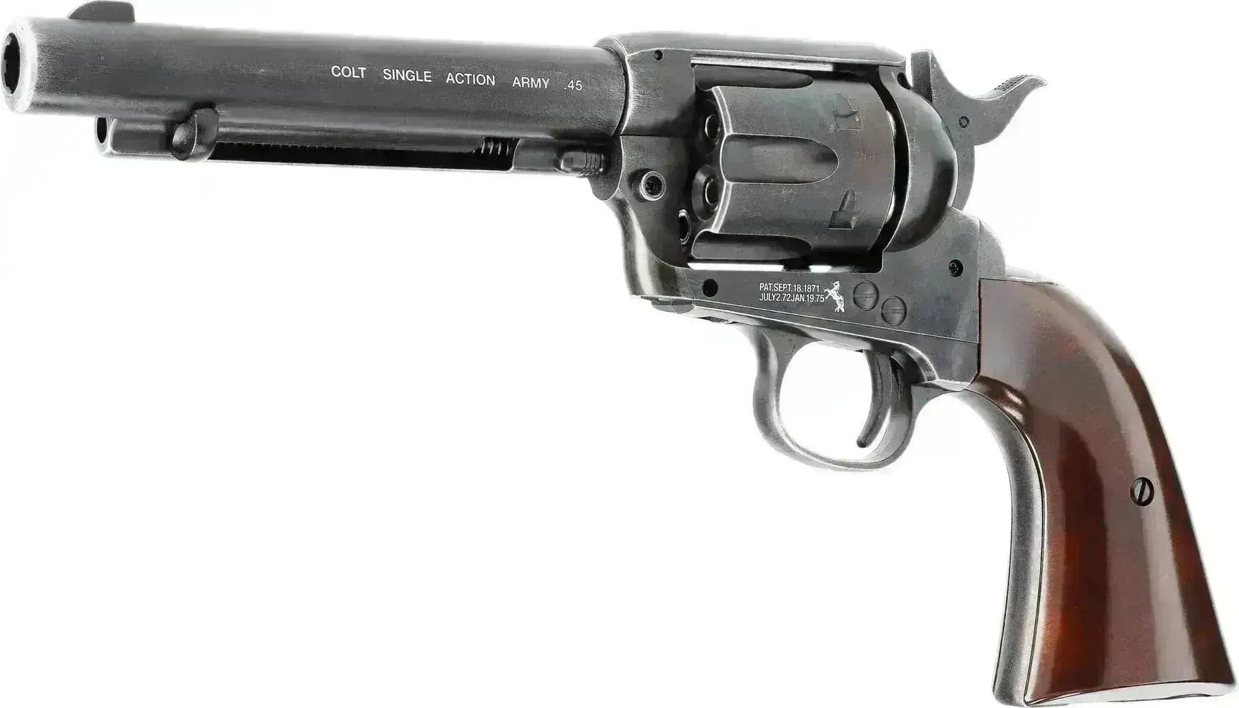 Ennek a klasszikusnak a 4,5 mm-es lövedékes változata igazi lakoma a szemnek, a revolver pedig ugyanolyan kinézetű, érzetű és funkcionalitású, mint az eredeti .45 Colt Peacemaker. Az igazi revolverhez hasonlóan ennek a csöve sem nyúlik ki. Minden patront egyenként kell betölteni a henger jobb oldalán található töltőnyílásba. Húzd félig hátra a kakast, majd forgasd el a csövet, és helyezz be egy új, töltött patront. Egy üres patron eltávolításához ugyanezeket a lépéseket fordított sorrendben végezze el, és nyomja meg a kioldókart. A patronok töltéséhez pellettel kell egy lövedéket behelyezni a tár aljába, ami azt jelenti, hogy nem kell kivenni a patronokat a töltények töltéséhez. A pelletes változat, amit itt kapsz, huzagolt csővel érkezik a nagyobb pontosság érdekében!