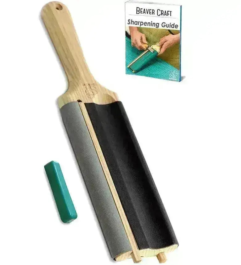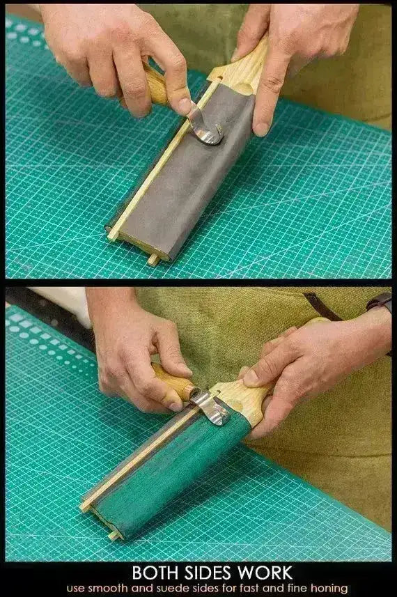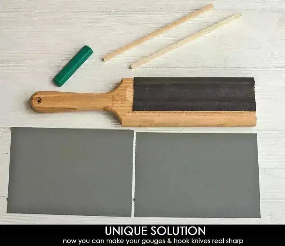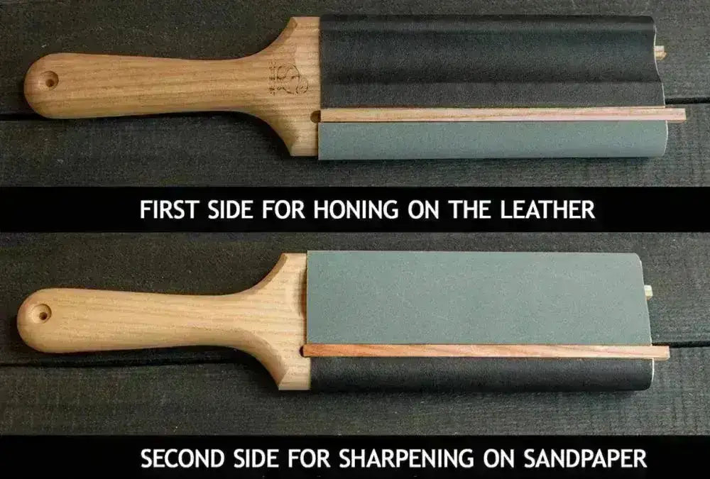 A blokk egyik oldala bőr, a másik csiszolópapír. Mind a zöld, mind a szürke polírozó pasztát, valamint a használati útmutatót is mellékeljük, így tökéletesen polírozhatja és karbantarthatja a késeket.