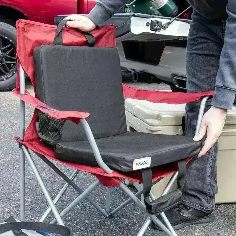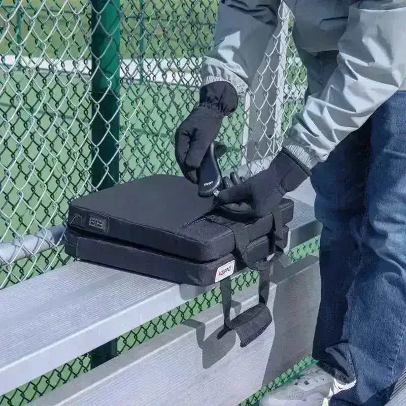 Tedd melegen és kényelmesen a hideg stadionüléseket vagy a hideg vadászterületeket a Zippo dupla fűtött üléssel. Ez a puha és párnázott ülés USB-kompatibilis tápegységhez, például Zippo HeatBank® egységekhez csatlakozik az állítható melegítés érdekében. Vízálló nylon szerkezetének, több hőfokozatának és kompakt összecsukható kialakításának köszönhetően minden típusú szabadtéri tevékenységhez tökéletes.