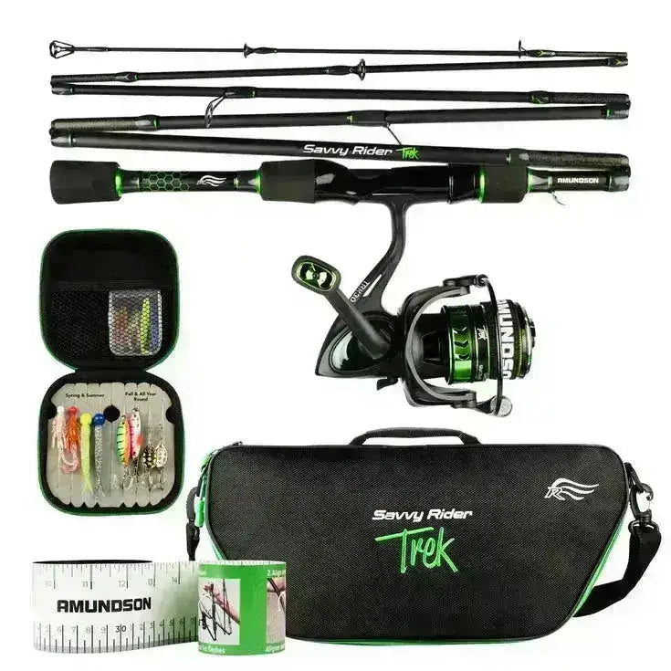 A Savvy Rider Trek egy kompakt és sokoldalú horgászkészlet, amely tökéletes szabadtéri kalandokhoz, például kempingezéshez vagy túrázáshoz. A készlet könnyen szállítható, kezdők és tapasztalt horgászok számára egyaránt alkalmas. Az összecsukható kialakítás megkönnyíti a csomagolást, miközben jó teljesítményt nyújt vízen.