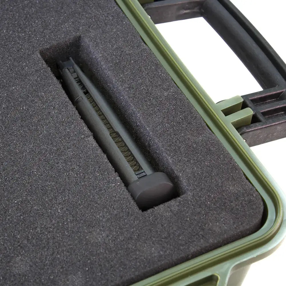 Innvendig finner du kraftig “egg shell”-skum i både topp og bunn. Dette gir rifla svært god støtdemping og holder alt stabilt under transport. Perfekt når du skal beskytte optikk, elektronikk eller sensitivt utstyr.