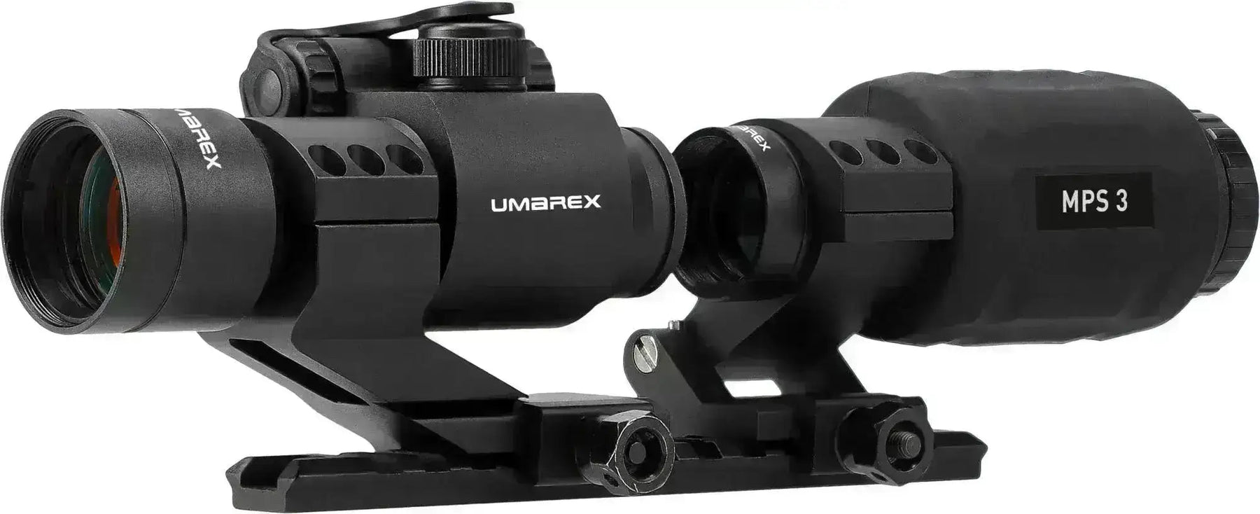 Az Umarex MPS (Magnifying Point Sight) egy jó vöröspontos irányzék, valamint egy 3x-os nagyítás kombinációja, amely használaton kívül oldalra dönthető. Így ez a készlet szinte minden alkalomra alkalmas, legyen szó nyílt terepen vagy CQB helyzetekben. A készlethez tartozik még egy 15,5 cm hosszú, 21 mm-es sín és egy imbuszkulcs, így az oldalán és a magasságban állítható a piros pöttyös irányzék.