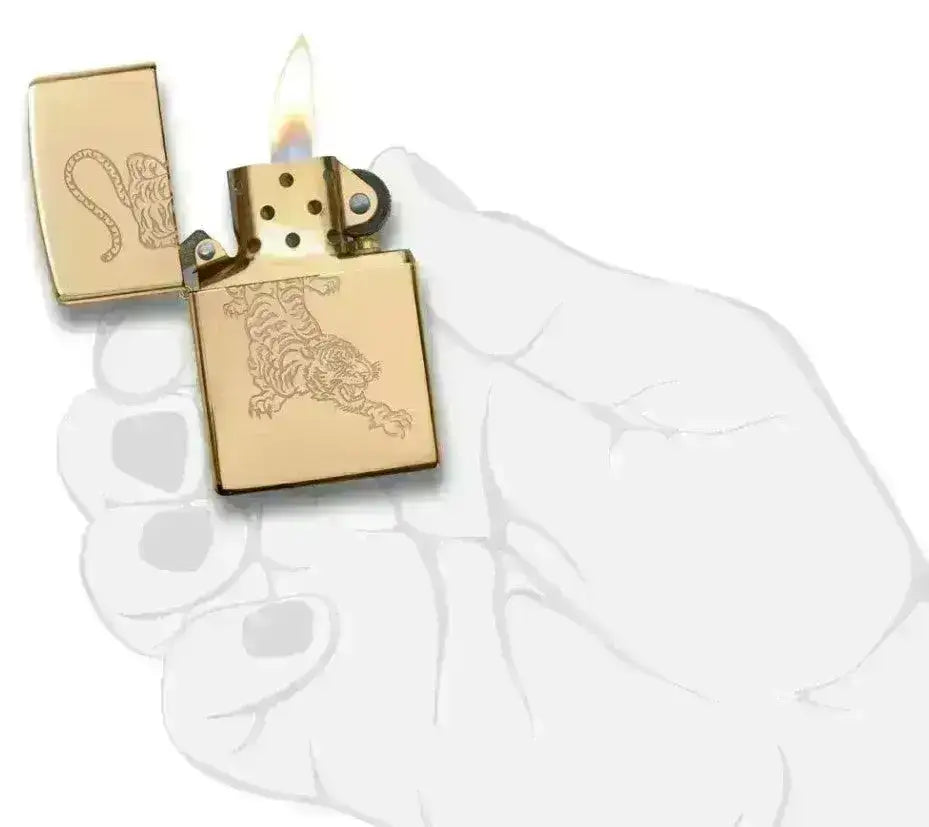 Gyönyörű fényes sárgaréz felület gravírozott tigris motívummal. Ez az eredeti Zippo ugyanolyan jól néz ki, mint egy polc dísze, és egy utazásra is magával viheti! A Zippo szélálló és tökéletes szabadtéri tevékenységekhez.