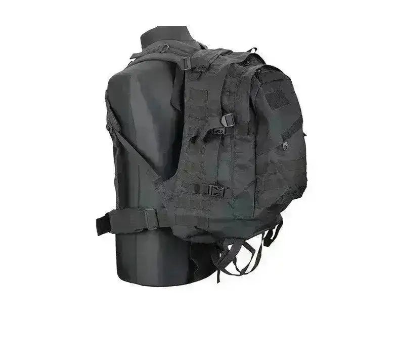 Jó és masszív táska praktikus megoldásokkal. Ez a fekete katonai hátizsák Alkalmas kirándulásokhoz, iskolába, mindennapi használatra, valamint airsofthoz és paintballhoz. A hátizsák rengeteg helyet kínál, állítható pántokkal és hasi övvel, valamint MOLLE rögzítéssel, így extra rögzíthető modulok vagy magazin zsebek ha kívánja.
