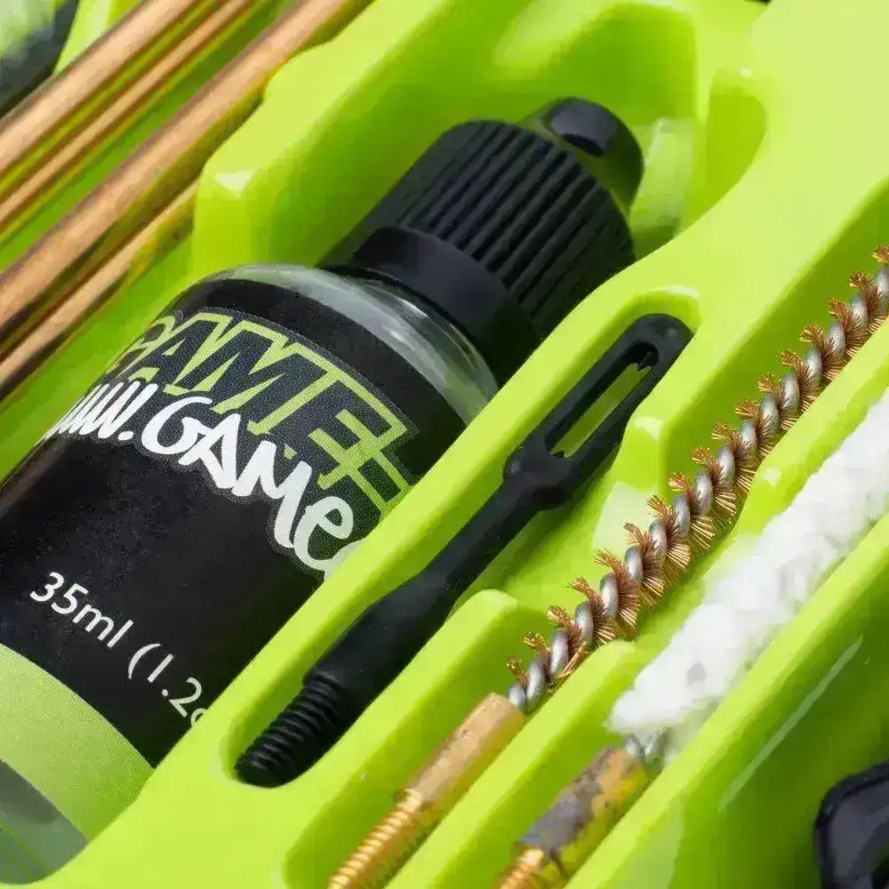 A légfegyver és különösen a csöv tisztítása és karbantartása fontos tényező a jó pontosság elérésében és a hosszú élettartamú fegyverben. Ebben a teljes csomagban minden szükséges eszközt megkap a fegyver tisztításához.