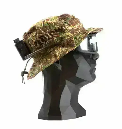 - Fleksibel montering: Monteres med borrelås på boonie, hjelm eller caps – passer alle briller med gummiramme.