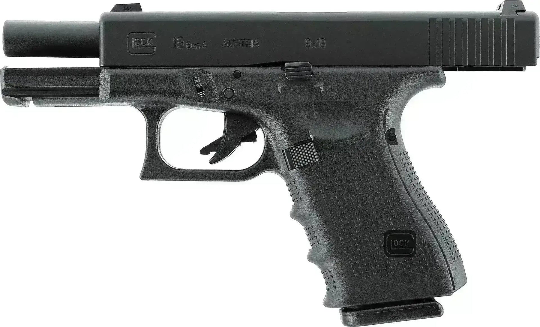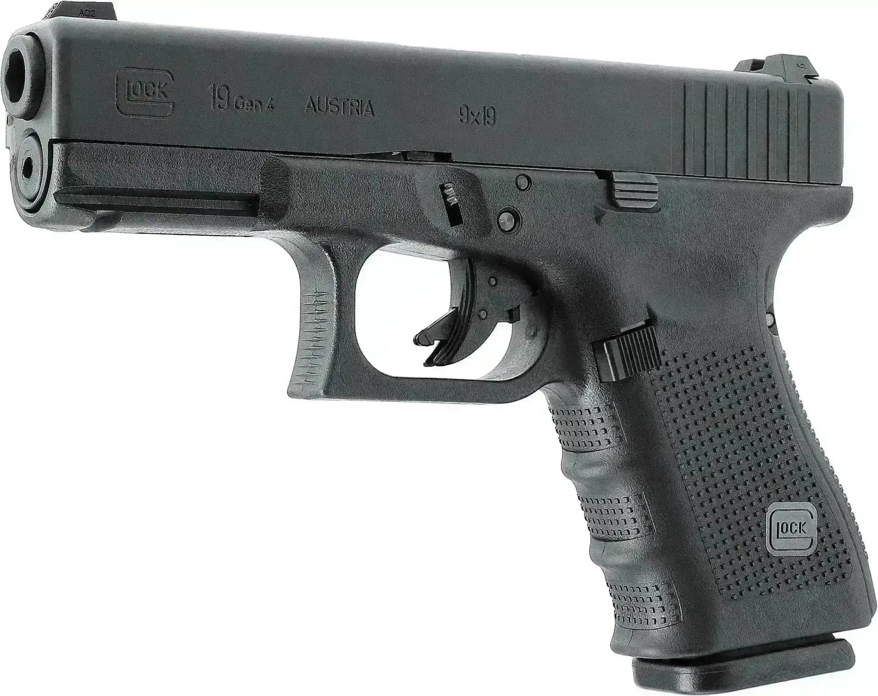 A Glock 19 és a Glock 19 Gen4 szinte teljesen ugyanaz. A különbség a keret textúrája, a csúszda kialakítása és a vas irányzékok. A Glock 19 Gen4 vas irányzékai licenccel rendelkező Glock vas irányzékok, amelyek kinagyítottak és fehér pontokkal rendelkeznek.