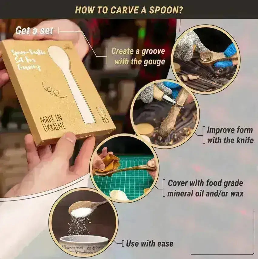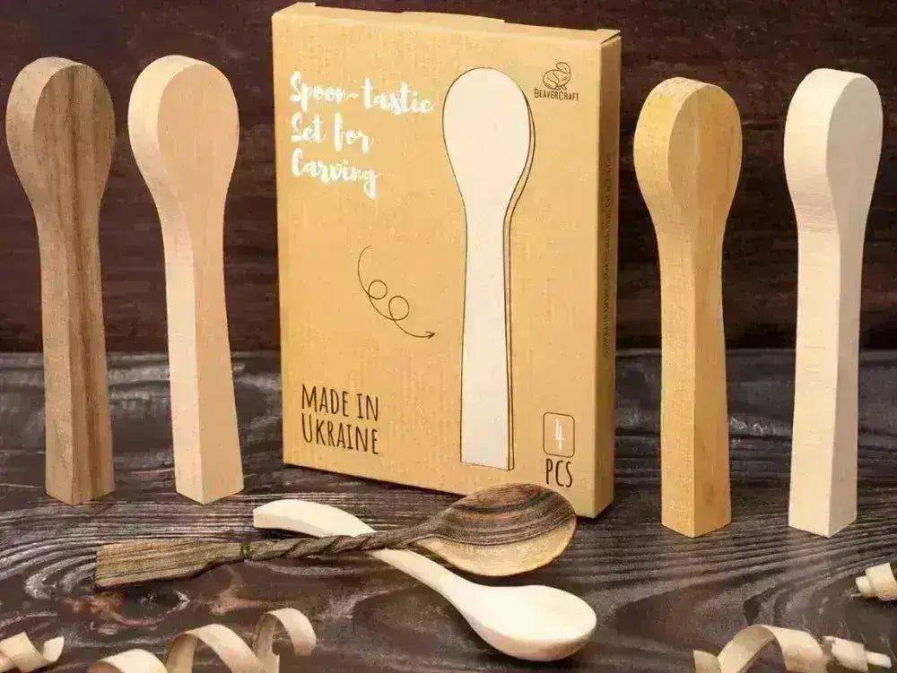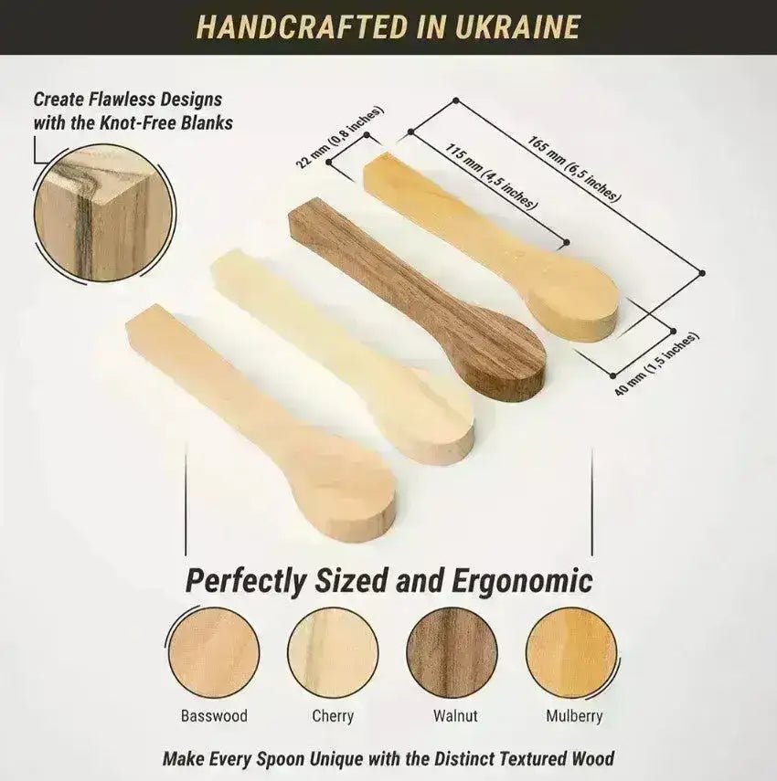 BB2 Téma fafaragás kanál - 4PC csomag Lind, cseresznye, habarcs, dió