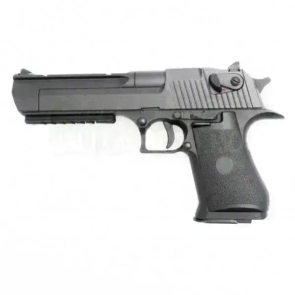 Itt van a híres Desert Eagle modell elektromos változata. A pisztoly fémből és műanyagból, a csúszda, a sín és a tár fémből készült. Ez a pisztoly kiválóan használható, ha a hőmérséklet olyan alacsonyra esik, hogy a gázpisztolyok nem működnek, vagy olyan fegyvert szeretne, amely megfizethető.