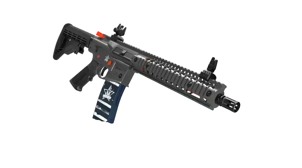 Elegáns M4-es puska állítható szárral és full ris sínnel. Teljesen automata puska limitált "Fallen Patriot" dizájnnal. Köpni tud 4,5 mm-es BB golyókat lő nagy sebességgel és akár 1400 ford./perc kilövési sebességgel. Ennél szórakoztatóbb nem lesz! A jó teljesítmény és a nagy tűzgyorsaság mellett ez a puska jó lövési képzést is kínál. Állítsd fel a palackokat, kannákat és vakut egy megfelelő helyre, és már kész is a fotózás! Ne felejtsen el védőszemüveget viselni, mert az acélgolyók ricochet okozhatnak!