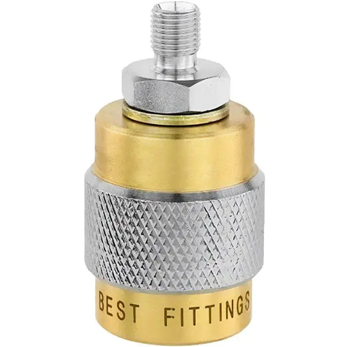Csatlakozó, amely lehetővé teszi a DIN külső menetes tartályok kompresszorainkra való felszerelését, mindössze egy 1/8 BSP belső-apa QD-re van szüksége.