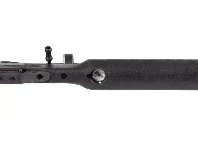 Fint polert vedlikeholdsfri kolbe av fiberforsterket polymer. Under forskjeftet sitter det en 21mm rail til feste av tofot, laser eller lykt og på toppen er det både 11 og 21mm rail til feste av optikk.