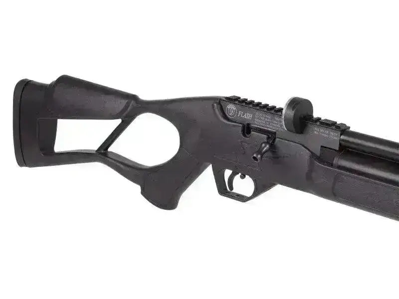 Hatsan balanserer kraft og presisjon til en svært god pris - Flash QE er en heldempet luftrifle med riflet løp, bolt action og 14 skudds magasin som gir hele 100 skudd per fylling. Perkt luftvåpen til blinkskyting på lengre avstander, trening eller til å ha på hytta!
