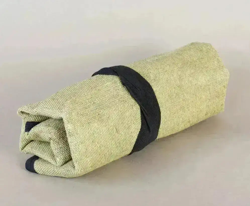 Praktikus és szép vászontáska összesen 12 kés és egyéb szerszámok számára. Csak feltekerve.