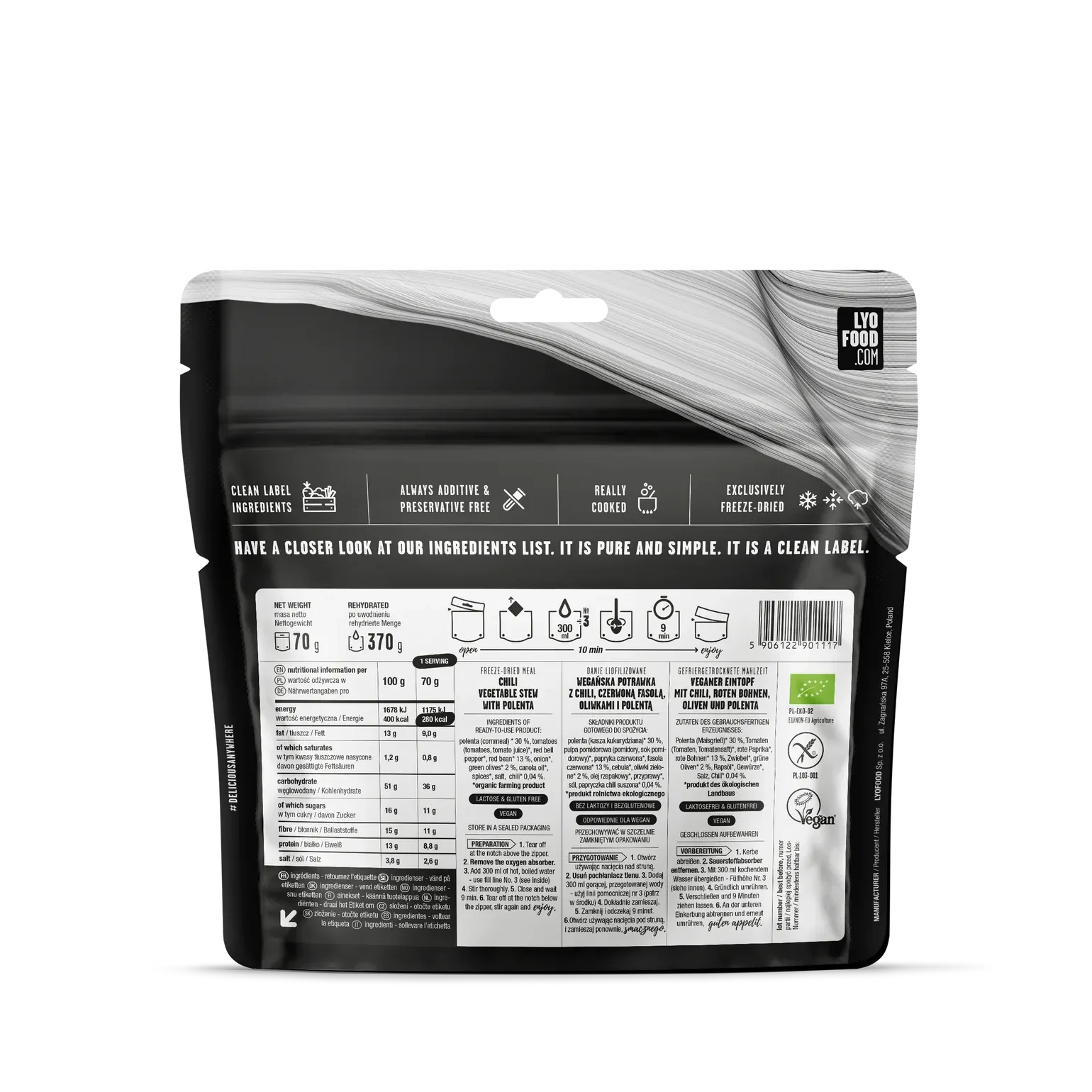 LYOFOOD Chili sin carne – Frysetørket vegetargryte for tur og ekspedisjon