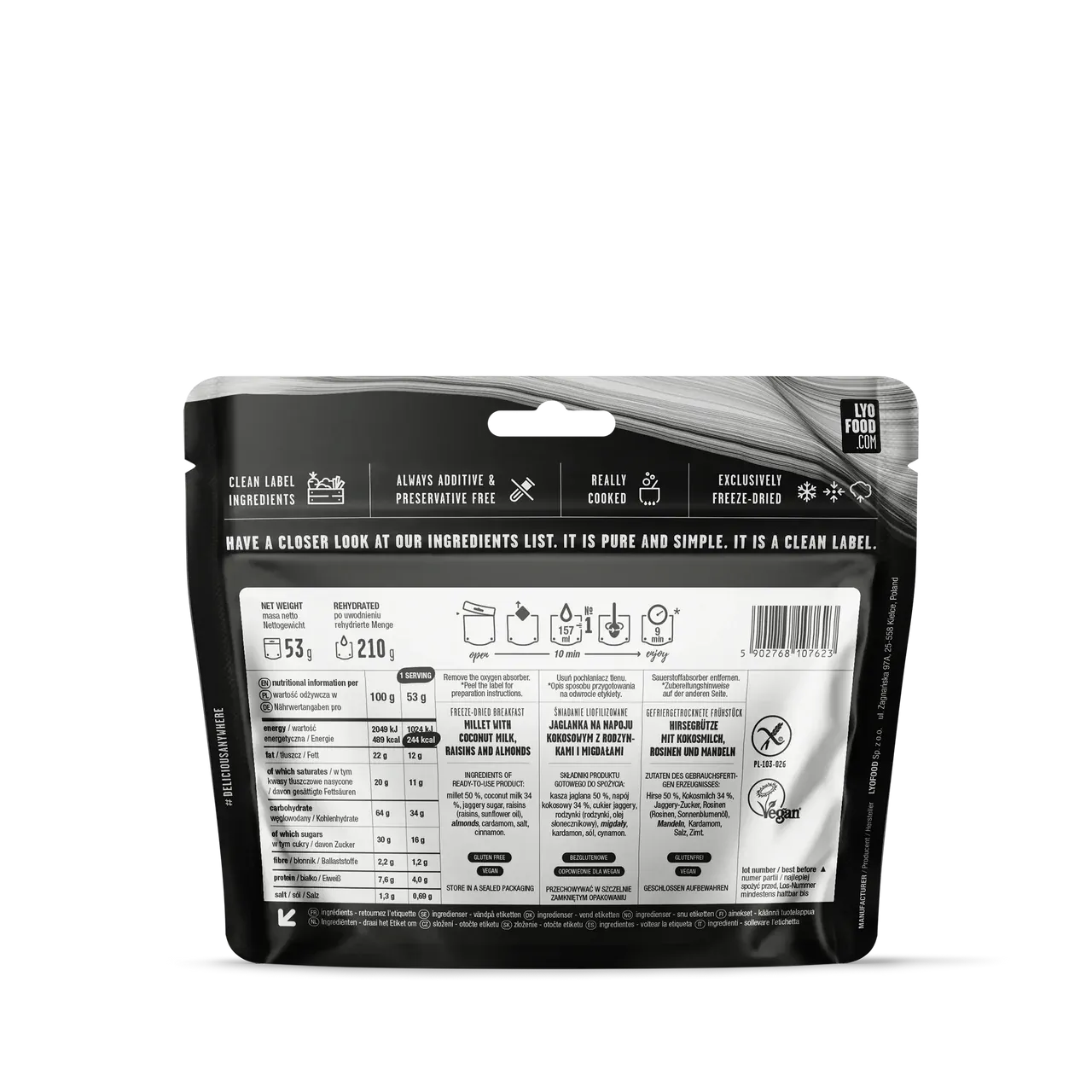 LYOFOOD Millet Payasam – Indisk hirsegrøt med kokos, rosiner og mandler