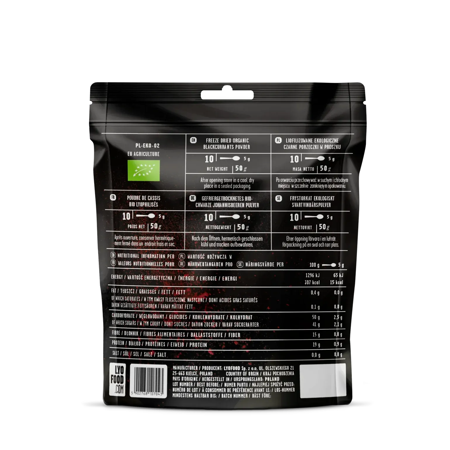 LYOFOOD Blackcurrant Powder bringer den kraftige smaken og næringen fra solbær rett til frokosten eller turmaten din. Pulveret er laget av ferske, økologiske solbær, skånsomt behandlet for å bevare alle viktige næringsstoffer. Perfekt for smoothies, grøt, yoghurt eller baking når du ønsker et naturlig løft av smak og energi året rundt.