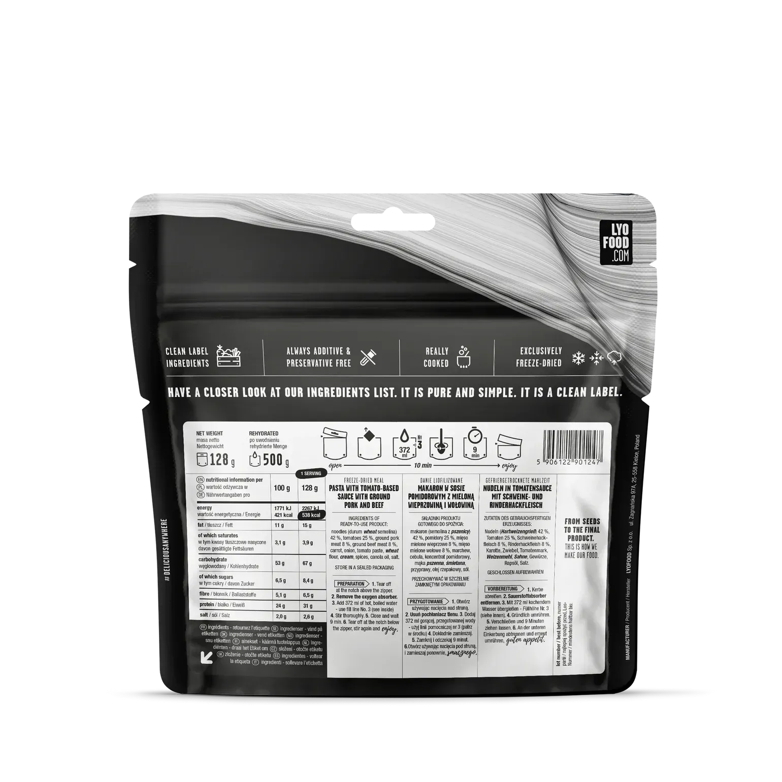 LYOFOOD Penne Bolognese – Frysetørket pastamiddag for tur og ekspedisjon