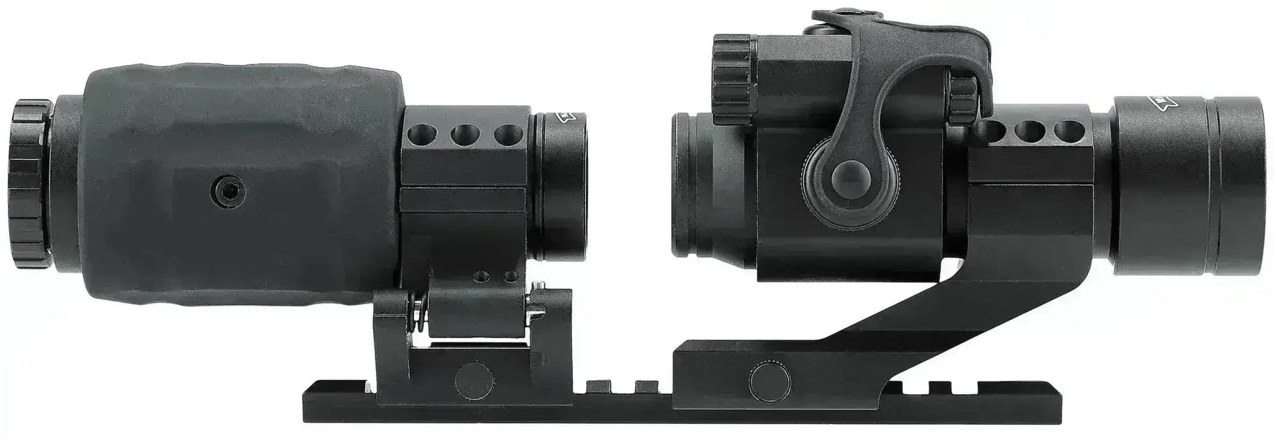 Az Umarex MPS (Magnifying Point Sight) egy jó vöröspontos irányzék, valamint egy 3x-os nagyítás kombinációja, amely használaton kívül oldalra dönthető. Így ez a készlet szinte minden alkalomra alkalmas, legyen szó nyílt terepen vagy CQB helyzetekben. A készlethez tartozik még egy 15,5 cm hosszú, 21 mm-es sín és egy imbuszkulcs, így az oldalán és a magasságban állítható a piros pöttyös irányzék.